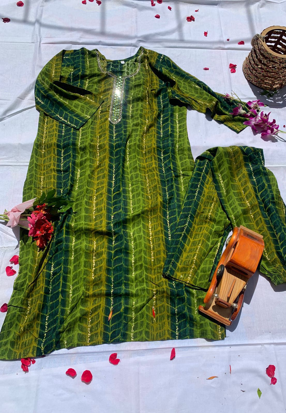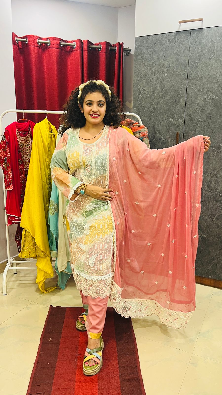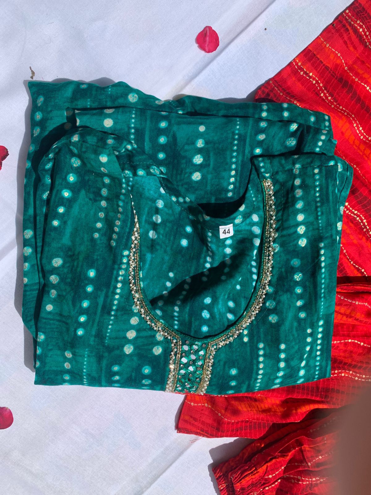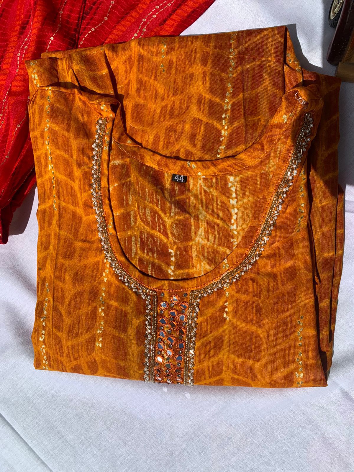kurta beautiful mirror work on neckline along with Moti work on same. With full sleeves